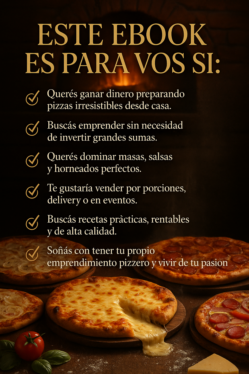 Para cualquiera que quiera emprender con pizzas desde casa, vender por redes, delivery o ferias, y generar ingresos reales.
